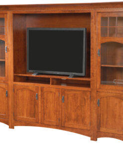 • One adjustable wood shelf behind the bottom center doors